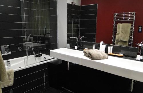 Domaine de La Ferrière features a garden, shared lounge, a terrace and restaurant in Châteaubriant. Featuring a bar, the 3-star hotel has air-conditioned rooms with free WiFi, each with a private bathroom. Guests can enjoy garden views. Guest rooms in the hotel are equipped with an electric tea pot. Each room is equipped with a closet and a flat-screen TV, and certain rooms at Domaine de La Ferrière have a balcony. Guests at the accommodation can enjoy a buffet breakfast. Rennes–Saint-Jacques Airport is 39 miles away.