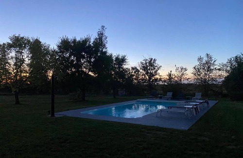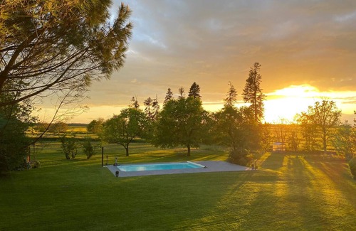 The Domaine de Treuillaud in Villers-les-Ormes has 5 bedrooms with a capacity for 13 people. Welcoming and spacious accommodation, with a view of the garden and swimming pool. The rental is located 60 km from "Beauval Zoo", 8 km from the "Golf Club du Val de l'Indre in Villedieu", 9 km from "Châteauroux" and its train station, shops and restaurants. It is situated in a quiet rural area and features a park with garden furniture, terrace, and balcony. You will also enjoy the washing machine, tumble dryer, iron, internet access (wifi), hairdryer, heating, air conditioning, private outdoor parking, 1 fan, 5 televisions. The open-plan kitchen, overlooking a friendly and bright dining area, is equipped with a refrigerator, microwave, oven, freezer, dishwasher, dishes/cutlery, kitchen utensils, coffee maker, toaster and kettle.The owners occupy the adjoining houseThe outdoor swimming pool (accessible from May to September) will delight you for unforgettable stays. See you very soon