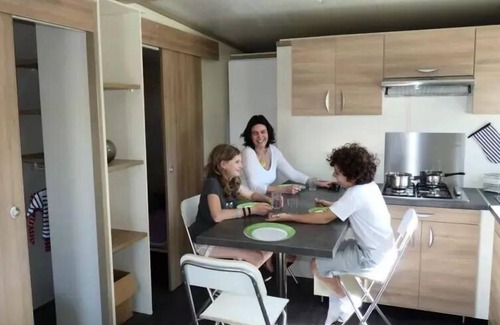 Details: Number of stars : 4 Near airport : Toulouse-Blagnac Airport #TLS (152.4 km) Wi-Fi access Swimming pool Multisports ground Tennis Family animations Sin Sports animations Ping Pong Pets Allowed : With supplement - Kept on a leash Barbecue Cooked Microwave oven Number of bedrooms : 2 Number of toilets : 1 Number of bathroom : 1 Fridge Surface (m²) : 35 Television Terrace Number of pieces : 3