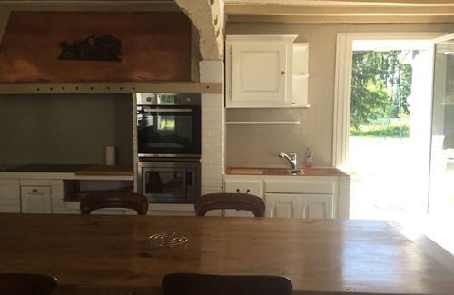 We offer a Longère which can accommodate 14 people. With fitted kitchen, dining room, living room with large sofa bed and pool table, bathroom with 2 showers, bath and toilet.