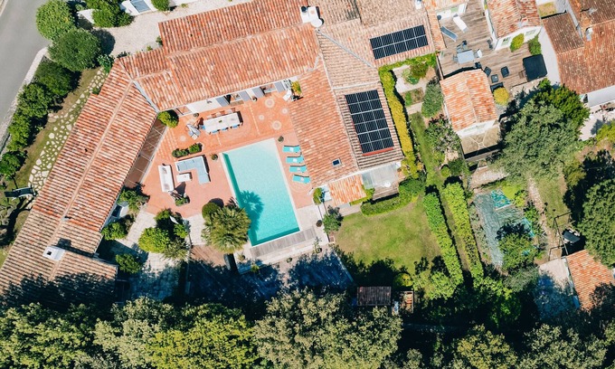 Welcome to Domaine Foulquier, a lush luxury residence located in Rivedoux, at the entrance of the island of Ré. This exceptional villa offers you an incomparable rental experience, combining high-end comfort and artistic touches.From your arrival, you will be charmed by the serene atmosphere of this residence, located next to a classified wood, in the calm of a dead-end street. Close to the village centre and a few steps from one of the island's most beautiful beaches, the Domain benefits from an ideal location to fully enjoy your holiday.With an area of approximately 400m², this single-storey villa offers a generous living space, both inside and outside. The numerous outdoor terraces, garden relaxation areas, and the vast 1900m² tree-lined plot invite you to savour every moment outdoors.Relaxation enthusiasts will be delighted by the heated swimming pool and spa that can accommodate up to 6 people, while food lovers will appreciate the two barbecues and the plancha for convivial meals. The boat-shaped terrace, with its barbecue serving as a fireplace, adds a touch of originality to your evenings on the island of Ré.You will also find artistic touches both outside the Foulquier villa with its large tree-lined and flowered avenues, its mosaic swimming pool, and inside with its terracotta floor in the large living and dining room. Moreover, with its 9 bedrooms, including 3 spacious suites ranging from 30m² to 70m², this villa can comfortably accommodate large families or groups of friends.In summary, the Domaine Foulquier is much more than a simple rental villa, it is an invitation to experience exceptional holidays, where luxury, comfort and nature harmoniously combine to create unforgettable memories.The assets of Domaine Foulquier:- ecological with its solar panels, orchard and vegetable garden- 9 rooms including 3 suites between 30m² and 70m²- a large professional kitchen and 2 annexe kitchens- a large cosy living and dining room + 1 in annex- a heated swimming pool and a 6-person spa- 2 barbecues and 1 plancha- numerous wooden terraces with relaxation areas and three dining spaces- tree-lined ground of 1900m²- 16 adult bicycles (adults only)Please note:Household linen is optional at €25/person and includes: Bed linen / bath towels / kitchen linen / beach foutasRegistration Number: 17297 000035 ZQ