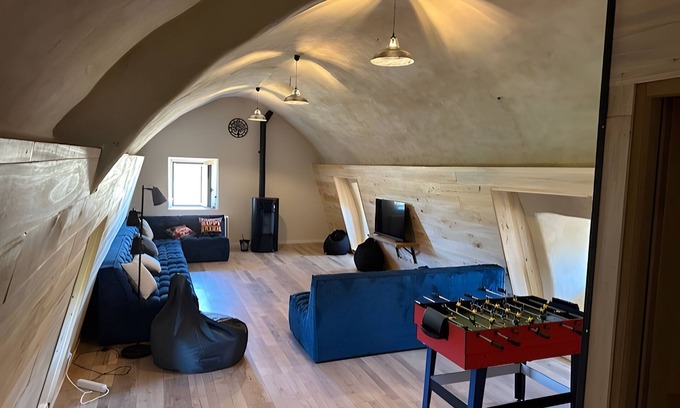 Located in Saint Georges de Luzençon, this recently renovated 210 m² farmhouse can accommodate up to 15 people with 5 bedrooms and 3 bathrooms. You benefit from a fully equipped private kitchen, Wi-Fi, television, washing machine, and self check-in for added convenience. Enjoy the mountain view, two bicycles, and an electric bike to explore the surroundings. Toys and books are available for children.