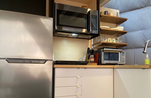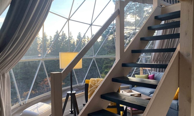 All domes are equipped with a complete kitchen and bathroom, bedding and towels, queen bed at the mezzanine and a queen sofa bed in the living space. We offer you your first dose of locally roasted coffee, oil, sugar, salt, pepper as well as products from the Poussière d'Étoile soap factory in Percé.
