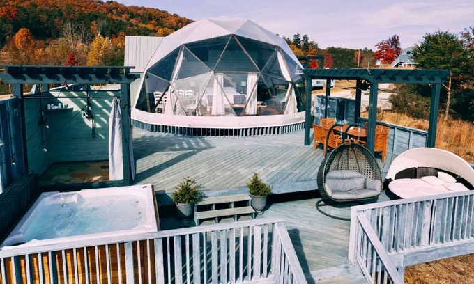 Perfect for couples & solo travelers looking for maximum privacy during their stay. Reconnect, laugh, and lose track of time on top of the world in a magical, inspiring, socially distanced environment that is guaranteed to lift your spirit and create cherished memories that will last a lifetime! Enjoy 1,175 square feet of private space (dome + deck + fire pit) and breathtaking mountaintop views from this impressive, Instagrammable, luxury geodesic dome! Enjoy our award-winning treehouse experience in a fascinating new structure with even more amenities. The LUXE Dome is a unique, bucket-list experience in an inspiring environment that is guaranteed to lift your spirit.