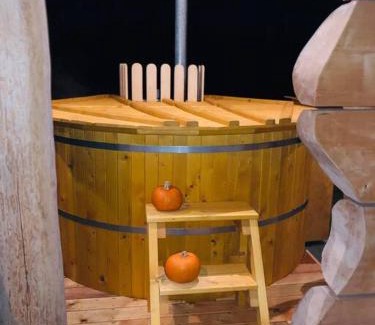 - A beautiful wooden house with a sauna and jacuzzi and a large garden.