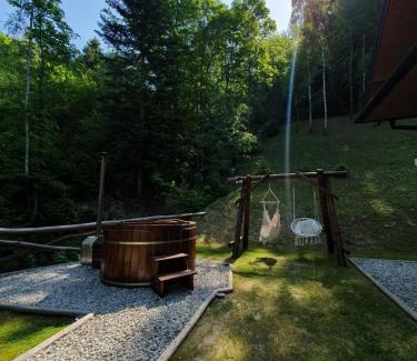 Providing a garden, Domek Nad Stawami Ochotnica Dolna provides accommodations in Ochotnica Dolna. This vacation home offers free private parking, a 24-hour front desk, and free Wifi. Outdoor seating is also available at the vacation home. Offering a terrace and mountain views, the vacation home includes 2 bedrooms, a living room, flat-screen TV, an equipped kitchen, and 1 bathroom with a walk-in shower. Towels and bed linen are offered in the vacation home. There's also a seating area and a fireplace. Niedzica Castle is 20 miles from Domek Nad Stawami Ochotnica Dolna, while Bania Thermal Baths is 24 miles from the property.