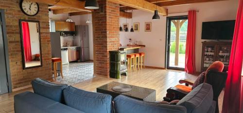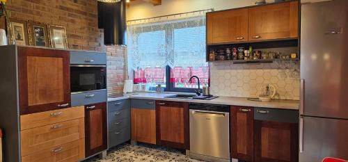 Offering a garden, Domek Przy Rzece offers accommodations in Kazimierz Dolny. This property offers access to a terrace, free private parking, and free Wifi. Outdoor seating is also available at the villa. The air-conditioned villa consists of 3 bedrooms, a living room, a fully equipped kitchen with a dishwasher and a kettle, and 3 bathrooms with a bidet and a hair dryer. Towels and bed linen are offered in the villa. There's also a seating area and a fireplace. The villa has a picnic area where you can spend the day outdoors. Kazimierz Dolny Castle is 4.6 miles from Domek Przy Rzece. Lublin Airport is 40 miles from the property.