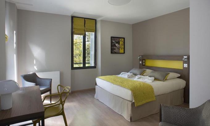 Domitys Le Château des Plans enjoys a location in Parthenay, 13 miles from Petit Chene Golf Course and 17 miles from Domaine des Forges Golf Course. 28 miles from Niort Train Station and 6.4 miles from Tennessus Castle, the property offers an indoor pool and a garden. There's a terrace and guests can access free Wifi and free private parking. The units come with parquet floors and feature a fully equipped kitchen with a microwave, a flat-screen TV, and a private bathroom with shower and bathrobes. A fridge, a stovetop, and kitchenware are also offered, as well as a kettle. The rooms are equipped with heating facilities. There is an on-site bar. Site Gallo-Romain is 19 miles from the condo hotel, while Grénetière Tower is 25 miles from the property. Poitiers-Biard Airport is 29 miles away.