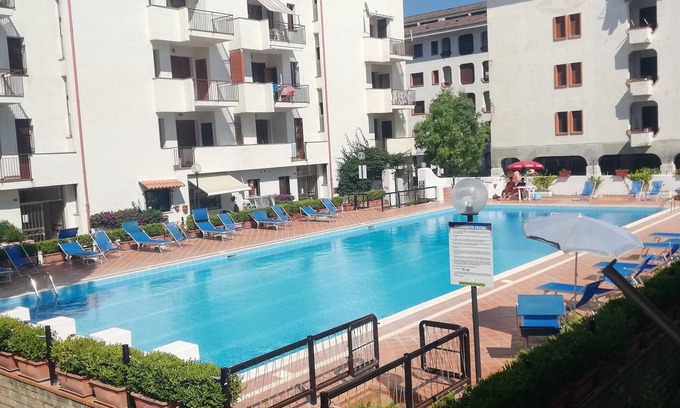 Yes, this Baia Domizia villa has a swimming pool. Check the Facility Overview section for details about the pool and other available facilities.