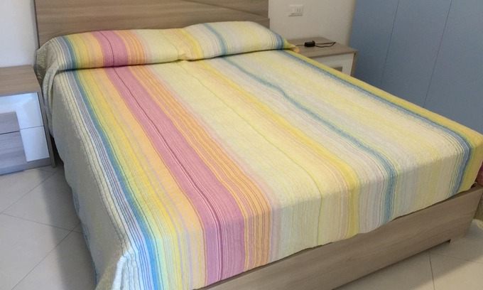 This is an apartment (two-room apartment 50 sqm) recently (July 2015) newly refurbished, consisting of a double bedroom with a 5 door wardrobe, 2 bunk beds, a dressing table and a safe. Kitchen (gas, washing machine, fridge, oven) with sofa bed for 2 people, equipped wall and satellite TV. Antibagno with shoe rack and clothes hanger. Windowed bathroom with shower, cabinet with built-in sink and wall cabinet. Espresso coffee machine - toaster - first aid kit - first aid list