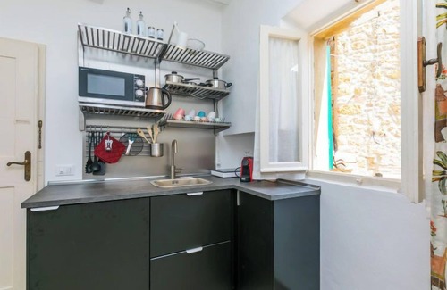 "Domus Mariae", 2-room apartment 35 m2, on the upper ground floor. Renovated in 2022, beautiful and tasteful furnishings: small living/dining room with digital TV. 1 double bedroom with shower/WC, electric heating and air conditioning. Kitchenette (2 induction hot plates, kettle, microwave, electric coffee machine). Sitting area. Facilities: iron, hair dryer. Internet (WiFi, free). Bedlinen, towels, final cleaning and all energy costs are included. IT050006C2CWJE7REB