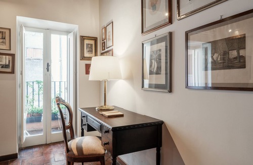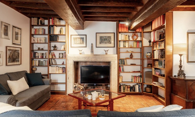 The Domus Quiritum Elite, consisting of a double bedroom, a large living room with balcony and double sofa bed, a kitchen and a bathroom, with old terracotta floors and exposed wooden beams, is located on the second floor of a historic building of the 800 (with elevator) in the heart of Rome. The large living room, with antique furniture, a large (non-working) fireplace, original paintings and many books will allow you to breathe an atmosphere of times gone by! The bedroom features a bed with hypoallergenic, ergonomic and breathable memory foam mattress and pillows. A washing machine completes the equipment of this apartment. The whole apartment is equipped with Air Conditioning and Wi-Fi connection. You will also have bed linen and towels, a hair dryer and an iron. Biscuits, fruit, fruit juices and honey at km0 of the Roman countryside will always be available for breakfast or for afternoon tea. The Domus Quiritum Elite is located in the heart of Rome, in the Campo dei Fiori district in the characteristic Regola district. The name derives from Renula, that is from that soft sand ("thin sand") that still today the Tiber river deposits during the floods. The district was in fact subject to the floods of the Tiber.