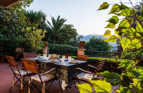 - Beyond the terraces, the outdoor space hosts a garden with figues, persimmon, orange, lemon and clementine trees, a courtyard with a tennis table, a courtyard with swings, a private parking. Extra free parking is always available on the private road outside the villa. An outdoor enclose area is available for dogs.