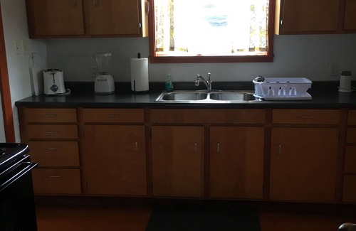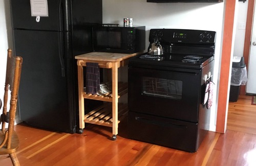 The kitchen comes equipped with dishes, pots and pans, utensils, some small appliances, electric stove and oven, and full size refrigerator. The eat-in kitchen has seating for 4 and a high chair if needed.