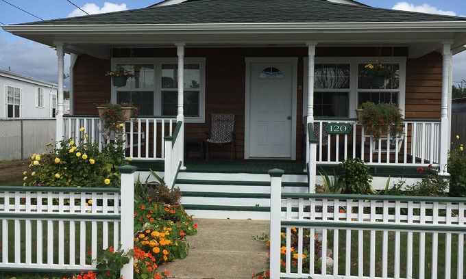 The owners of this one story craftsman-style house have extensively renovated it as if they were going to live in it themselves, and in so doing have made this house into a home. The exterior has been re-sided with cedar siding and painted trim in white and green. The front porch has two porch swings on either side, facing each other. Great for sitting and watching the world go by. On the inside the original wood floors are newly restored and each room is trimmed in varnished wood. Some furnishings are the owners' personal collection of antiques. It's the perfect place to get away from all the hustle and bustle and still have the comforts and conveniences of a clean, cozy home.