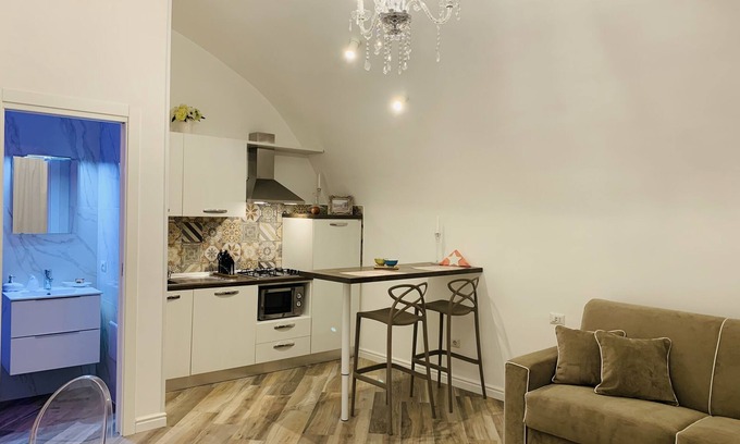 Donn'Anna Naples is located in the historic Bourbon district of the Spanish Quarters in a historic building of the 900 and offers studio apartments of contemporary Neapolitan style with independent entrances, respectively composed of kitchen living, with sofa bed king size, private bathroom with large shower, wardrobe, desk, air conditioning, Wi-Fi and LED TV.