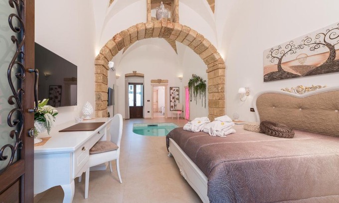 A good location for a relaxing getaway in Alliste, Donna Fiora Antica Dimora is a bed and breakfast surrounded by views of the garden. The property features an indoor pool, garden, and parking on-site among other facilities. The bed and breakfast provides a spa experience, with its hot tub, hammam, and spa facilities. The accommodation offers a sauna, free Wifi throughout the property, and family rooms. Featuring a terrace, the units offer air conditioning and have a flat-screen TV and a private bathroom with bidet and bathrobes. There's also a well-equipped kitchenette in some units equipped with an oven, a stovetop, and kitchenware. At the bed and breakfast, the units are fitted with bed linen and towels. Buffet and continental breakfast options with local specialities, fruit, and juice are available. There is a coffee shop, and a mini-market is also available. Punta Pizzo Regional Reserve is 7.8 miles from the bed and breakfast, while Gallipoli Train Station is 10 miles away. Brindisi - Salento Airport is 60 miles from the property.