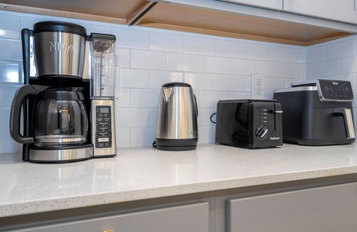 - Fully equipped gourmet kitchen with high-end appliances (Airfryer, Nespresso Vertuo Machine, Kettle, Toaster, Regular Coffee Machine, Blender).