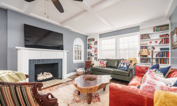 This quaint 2-bedroom/1-bath retreat is complete with a fully equipped kitchen, dining room, and a cozy living room. Our beautifully landscaped fenced-in yard offers a custom swimming pool for a refreshing escape on hot summer days. Spend your days fishing or kayaking on the River, or hiking to the breathtaking nearby waterfalls. Plus, with easy access to the University of the Ozarks, Serpent Cave, playgrounds, and the Aquatic Center, there's something for everyone to enjoy.