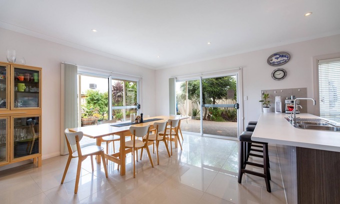Come and relax in this beautiful family beach house or discover this district which is full of surprises. It is close enough for a day trip down the Fleurieu Peninsula, to the McLaren Vale Wineries & restaurants or Goolwa via Port Elliot or Victorj Harbor. Even Kangaroo Island isn’t far away. Aldinga Central is approximately a 10 minute drive away, and you will find Coles and Woolworth, and numerous speciality shops and cafes.