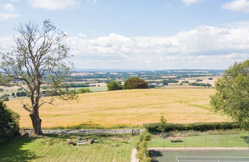Dormestone House: sleeps 10 (max 8 adults), 4 bedrooms, 1 en-suite bathroom, 1 family bathroom, and 1 shower room. 3 reception rooms, open fire, enclosed extended gardens, ample parking for 8 cars, outdoor heated pool, tennis court, and fire pit.