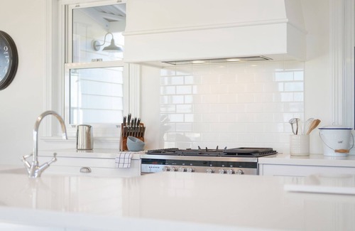 This luxurious residence features five generous light filled bedrooms to accommodate up to 14 guests (a maximum of 10 adults and four children). There is a queen master bedroom with travertine ensuite and walk-in wardrobe and a second queen bedroom in the western wing of the house. Both bedrooms open to a stunning verandah where the sun streams through of an afternoon. They are also accessed through a traditional Australian country home breezeway.