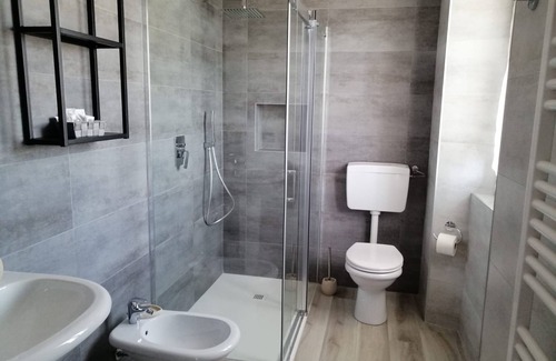 Room with double bed, wardrobe with safe, satellite TV, table/desk with 2 stations, minibar, air conditioning. Private bathroom with large shower, toilet, bidet, independent heating, hairdryer.