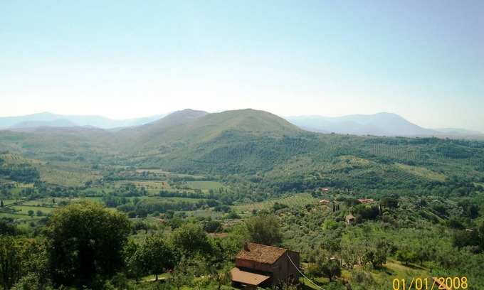 is a portion of a semi-detached villa built in the 70s. it is located along the main road at the beginning of the village. the house does not have a heating system with radiators, but there is a fireplace and a wood stove (wood costs € 1.50 per 10 kg box). it is a large house consisting of 3 bedrooms (2 double bedrooms and 2 single bedrooms), 2 bathrooms (one with tub and one with shower), 1 kitchen (equipped with gas stove, refrigerator, sink, as well as cutlery, dishes and various pots), 1 living room with fireplace, 1 balcony and 1 large terrace. you can enjoy a spectacular panorama over the entire Farfa valley. there is an adjacent public car park and a bus stop. the house is located along the main road of the town 50 km from Rome. it is very easy to get there either by car by taking the Salaria road and following the signs for Montopoli di Sabina or the A1 motorway exiting at Ponzano-Soratte. with public transport it is even easier because from Rome Tiburtina there is the train every 15 minutes to Fara-Sabina and then there is the Cotral bus every 30 minutes to Montopoli di Sabina. in both cases, in less than an hour you can come and go from Rome. in the village there is a XII century church. and an Ugonesca tower.
