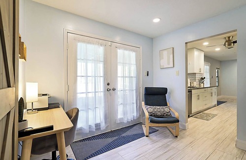 The home is equipped with three outside exterior security cameras that will be turn during your stay. First will be over the front door facing the driveway. Second is on the northeast corner overlooking the east side of the house and guest suite patio. Third is located on the northwest corner house overlooking the backyard, shed and side gate. The home is equipped with an ADT security alarm and smart thermostat. Absolutely no cameras are inside the home or any other area not listed to protect your privacy. Please do not unplug or cover up the exterior security cameras at any time.