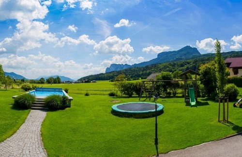 Our child-friendly resort surrounded by nature is the ideal starting point for your stay at the Mondsee in the versatile Salzkammergut. Whether family holidays, cycling holidays, beach holidays, hiking holidays or short breaks - there is the right offer for every guest in our region. Singles, couples, young at heart and especially families with children are always welcome in our very quiet house. What is there in our house for the cold season: sauna and solarium, games and hobby room. The lounge is always open for a cozy game night. The festival city or the exhibition center Salzburg are only 25 min. away. We look forward to you!Your family Pöllmann