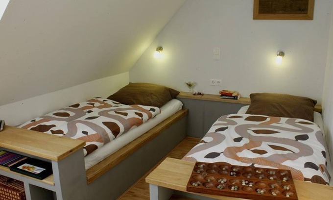 Cozy double room with separate beds and shower / WC, radio, telephone and TV, Internet, hairdryer and safe.