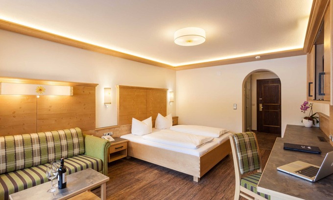 180 beds with 4-star comfort are at your disposal, lovingly furnished and equipped with a personal touch. We offer the Verpfleungsvarianten with breakfast buffet or the 3/4 luxury board (breakfast buffet, lunch soup and salad buffet and in the evening a 4-course menu), various theme buffets and in the evening a four course menu, Tuesday and Friday coffee and Kuchengratis Tiefgarenplatz. Relax after an eventful day (guided winter hikes, snowshoe hike, bowling evening, cross-country excursion urs, ...) in our Vitality Spring!Our well-trained wellness team spoils you with massages, beauty treatments, wraps, baths, Ayurveda, La - Stone Therapy, herbal stamp face massage, Lef Bodysoul, ... and much more. SOURCE OF LIFE with the Haldensee indoor pool -150m², the outdoor pool Traualpsee-60m² from April to November and the children's adventure pool Bärenschluchtund the cooling pool Vilsalpsee approx. 80m².QUARE OF HEAT with parlor sauna, bio sauna, herbal steam bath, relaxation area with open fireplace.