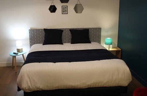 Our contemporary guest house is composed of 5 soundproof rooms with bathroom, a common living room of 45 m2 fully dedicated to guests with kitchen (ceramic hob, fridge, microwave ..), courtesy tray, a library, free parking and plenty of places around. Access to a large roof terrace is direct, there is a swimming pool heated from May to September (between 28-34 degrees) with swimming lane of 15 x 4 m and many sunbathing, landscaped garden, parking. The WIFI is present in the rooms and common areas. Continental breakfast served buffet style (between 7 am and 8.30 am on weekdays and 8.30 am-10 am on weekends and public holidays) in the communal lounge and / or on the sunny terrace with fresh breads and pastries, homemade jam, fruit juice, homemade yogurt and cakes to start the day in a good mood.