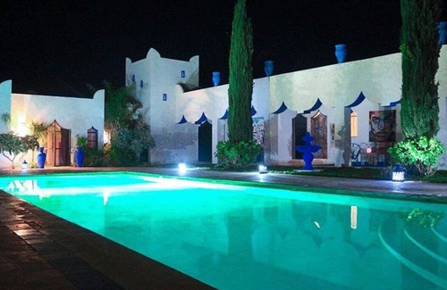 Villa of 800m at 10min of Essaouira road of Marrakech, garden , gum, swimming pool, pation , restaurant , breakfast included , each room with privet bathroom all are with view on the pool bus and taxi are available from the house to thee nearest beach of Essaouira