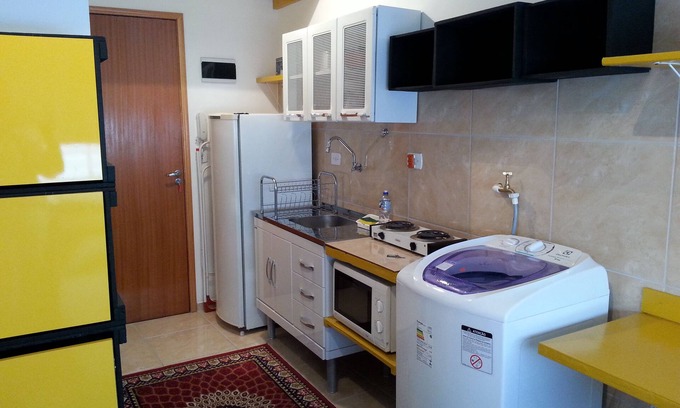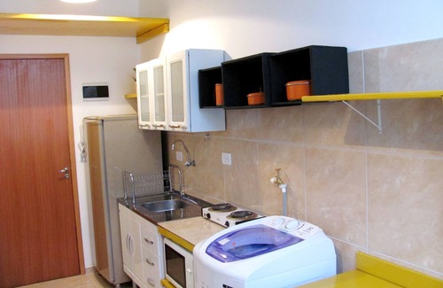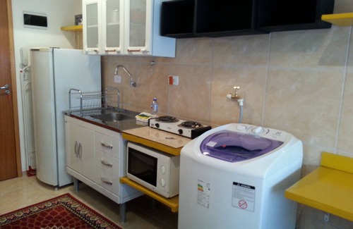 Studio type studio apartment with full kitchen, microwave, stove, refrigerator, pots, thermos flask, coffee filter, iron, ironing board, full length mirror, neatly decorated in industrial style, wireless internet, washing machine, television, internet, central location, Metro Bresser Mooca only 8 minutes walk flat and safe. Less than five minutes walk away we have bakeries, restaurants, churches, shops, mechanic's shop, bus, Uber and more.