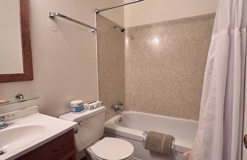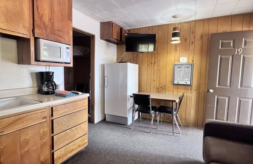 Discover the charm of Flaming Gorge in our cozy motel room. Featuring a plush queen bed and a fully-equipped kitchenette, it's perfect for both relaxation and convenience. Step outside to enjoy a tranquil yard, ideal for morning coffees or evening relaxation. A blend of comfort and scenic beauty awaits in this Utah gem.