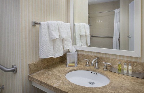 Recreational amenities at the hotel include an indoor pool and a 24-hour fitness center.