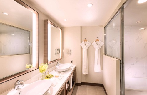 DoubleTree by Hilton Okinawa Chatan Resort offers 160 air-conditioned accommodations with safes and slippers. 50-inch flat-screen televisions come with cable channels. Bathrooms include separate bathtubs and showers, bidets, complimentary toiletries, and hair dryers.