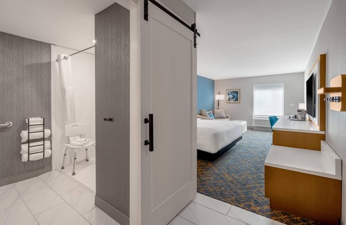 Recreational amenities at the hotel include an indoor pool and a 24-hour fitness center.