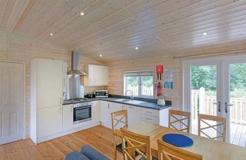 Amenities: Gas central heating. Electric oven, gas hob, microwave, fridge/freezer, dishwasher, kettle, toaster, iron, ironing board. Smart TV, Bluetooth speaker, WiFi. Fuel and power inc. in rent; barbecue coals available to buy. Bed linen and towels inc. in rent. Travel cot and highchair available for £10 each. Designated, off-road parking for 1 car with additional parking available in main car park. Enclosed double veranda with decking, furniture, barbecue, and hot tub. Sorry, no pets. Sorry, no smoking. Shop 1.1 miles, pub 0.9 miles, lake 0.2 miles, river 0.8 miles. Note: Early check-in and late check-out available for £25. Note: Hot tub will be ready for use from 6pm on the day of your arrival. Note: Guests can purchase extras and packages ranging from £5 to £95. This property has a Good Housekeeping Bond of £250.