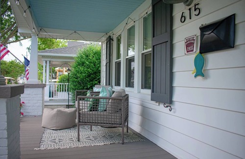 🏖Come visit this updated 1930's bungalow. 5 blks to restaurants, shops & beach end of our street 🏠 First Floor master, w/ large bunky upstairs sleeps up to 8 (+ pack and play & air mattress) 🛶 Take stroll/ride to the beach, hose off in outdoor shower, grill on patio & cozy up to a fire. Or relax in the clawfoot tub! 💻 Staying the week & work remote? Work space ready for you! Wifi/Netflix. Updated kitchen & laundry space in your home away from home! 🐶 Dogs <50lbs (2 max) ☀️ Sunday-Sunday June -Aug Newly FENCED yard & Gas grill! Walk in with living room & work space off the foyer. Walk straight through dining room to kitchen/laundry. Dining table seats 6-8, movable island in kitchen. Full bathroom and First floor master with ensuite bath, to left of kitchen. Open staircase off the living room to the 2nd floor bunk/loft featuring second living space, full bath, two queen (lower ceilings) and 2 twin beds in alcoves with dividers and a large walk in closet with vanity. Air mattress and pack and play also available to sleep kids. 5 TVs available during stay- in living, master, loft, & 2 alcoves with queen beds. Mini split and large overhead fans upstairs. Walk in shower or claw foot tub available downstairs, and a tub/shower combo upstairs. Original hardwoods on the first floor and a gas fireplace adds to the charm! Older home updated with keeping character in mind, truly one of a kind! OUTSIDE: outdoor shower, solo Firepit, outdoor table/umbrella that seats 6, Adirondack chairs, several yard games in the shed, along with floats, paddle board, beach umbrellas, gas Weber on patio (if propane needs to be filled please fill and send receipt for reimbursement), charcoal grill (in shed)and more in the secure fenced yard! Please make sure to turn off all water and gas when not in use. Access to complete house, shed and yard. One small owners pantry with supplies is locked. Prompt communication as needed with owner via message In the historic district… a quiet block walkable or cartable to Beach (5 blocks to entrance at end of our street). Super close to Oyster Farm/Marina village with large walking/biking path and side walk behind the house along Washington which also makes a nice walk or bike ride to beach! 5 blocks to rest of shops and restaurants. 3 blocks to Central Park which kids love for the splash fountain, playground/zipline and field. Live music in the summers! Walk to most everything in Cape Charles or rent a golf cart from eastern shore carts or CC Ryders, especially if you have kids this is easier and they love it! Easy to use car too plenty, of street parking. Park your golf cart out front with charging cord on left side of house, or park next to shed if raining (covered) to charge which you can access from side walk and side yard out front or the vacant lot behind on Washington Or ParkPark your car (s) right out front of our house on the quiet street. Please make sure to park in front of our house (space for two cars) or across the street as to not take our neighbors spaces whom are full time residents and great neighbors! Sunday to Sunday bookings only June Through August ! 2 beach cruisers & a trike , 5 beach chairs, beach umbrellas, paddleboard and floats, new Weber propane grill (if need to refill submit receipt to us for reimbursement), charcoal grill (can get charcoal at food lion if needed) in large shed with yard games and life jackets 2 adult, 2 <30lb kids available for use. Lawn chairs, new solo fire pit, outdoor dining table also available to enjoy in the yard in your home away from home! Outdoor shower is a must! Book your golf carts EARLY with Eastern Shore Custom Carts or CC Ryder… they fill up in summer. It's definitely a walkable/golf carting beach town! Oyster farm marina is also a few block walk so boating into Cape Charles to stay is easy, you can rent a slip daily or weekly. For the busy season we also recommend booking dinner reservations in advance. Some games (in front team console) & kids toys available for use along with baby gear (pack and play, changing pad, booster high chair, sound machine, monitors and a bed rail). *Lawn is mowed every 10 days or so by a company as needed and done quickly, if this is an issue at all just let us know ahead of time. *No parties or events please. *Newly fenced yard -please pick up after your dogs and dispose of all waste in plastic bags, tied in trash can. There will be an additional $50 fee for dogs not picked up after. Please respect the yard so the next guests can enjoy :-) *New paddle board in shed for guest use *Charging cord for golf cart on left of house to run to street or can plug in outside of shed. No EV car charging currently available. Carts can be rented from eastern shore custom carts or Cc ryders. *string lights in front plug into left side of house, remote on green console. String lights in back plug inside shed. Please turn off overnight. *The gas cart in the shed is not for public rental. * Kayaks on back of shed need to be repaired so cannot currently use. *Please purchase travel insurance to protect your vacation investment. Refunds will not be give for weather or circumstances beyond our control. Avail through air bnb or other sources online. FOLLOW, TAG, AND SHARE YOUR MEMORIES WITH US ON OUR SOCIAL MEDIA. @downbythebaycapecharles