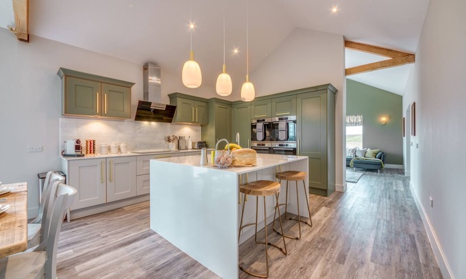 Situated on a working farm, these barns have been sympathetically restored to the highest standards to uncover much of their original charm and character boasting exposed beams with imposing vaulted ceilings, stone walls and lots of welcome touches to make you feel home from home. Upon arrival, guests walk into a large, open plan living space which flows seamlessly through to the exquisite kitchen areas, providing the perfect place to cook up your favourite meal or kick back and unwind following a busy day's adventure. Each bedroom is dressed in crisp white bed linen. Outside, the open space with south facing patio makes the ideal place to relax, enjoy outdoor games or even al fresco dining on a sunny day.