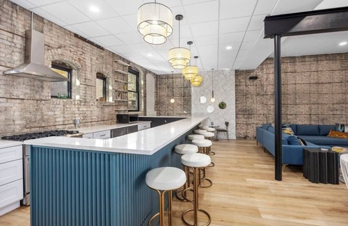 Welcome to The BlueJay, situated in the heart of downtown Grand Rapids in the bustling Bridge Street Entertainment District. Our exceptionally chic boutique building seamlessly combines luxurious comfort with lively originality. Indulge in an ideal stay with our meticulously appointed rooms, boasting a blend of vintage and contemporary styles. The building sleeps up to 12 guests, with 5 suites on the top floor and one ADA-accessible suite on the main floor with a convertible sofa bed.