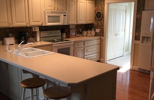 Beautiful open concept three bedroom, two bath home in the heart of downtown Lebanon. Within walking distance of several restaurants and less than an hours drive from 8 Bourbon Trail distilleries. Plenty of free parking. All amenities are provided. 2 bedrooms have privacy locks. One bedroom has a king size bed the other two have queen size beds plenty of closet space and hangers. Baby bed is available along with high chair, portable playpen, changing table, and stair gate. House is handicap accessible with no steps to enter the house. All doors are 3 foot doors and toilet seat. shower seat, and shower wand available for guest use.