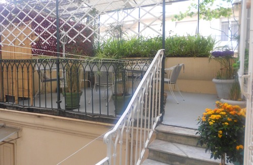 80 m2 apartment downtown (on the 1st floor), comfortable, two double bedded rooms (Dim 140/160), living / dining room, fully equipped kitchen, bathroom (with shower) and separate toilet, large terrace with garden and private parking.