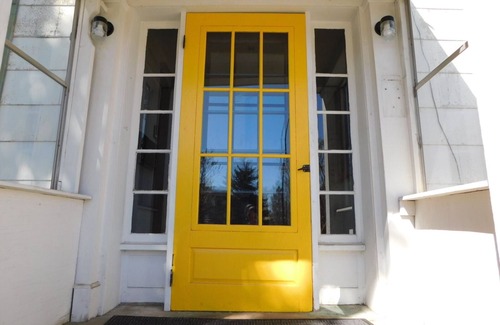 A super cheery, stylish place in Lewistown! Enjoy a stay here for a week or a couple of months. This main level studio is recently updated and super convenient. Offering a bedroom for 2 and a sofa bed for additional arrangements. Enjoy a SmartTV w/apps and organic, non-toxic supplies, wifi, private parking, a common area washer/dryer, and lots of extra perks! Downtown restaurants and nightlife out your front door and within walking distance. One small/ medium size dog, okay.