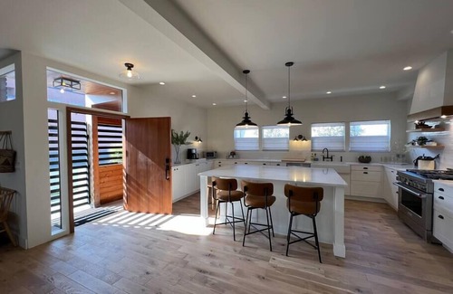 Stunning new 3 bedroom/2 bath flat with private deck and patio. Located just a block from the main plaza, in a fun and lively section of Arcata. Next door to Salt Restaurant and just steps away from countless other restaurants, the Arcata Co-op natural food store and shopping. Park in our private parking lot then walk everywhere from this wonderful location with a walk score of 96! Enjoy this spacious 2000 square foot flat with private outdoor space in the center of Arcata. Enjoy this three bedroom flat with two full baths and an open concept living, dining and kitchen area. Private parking for guests, a shared outdoor common area, your own private entry off I Street; as well as a private sunny deck off the master bedroom and a patio with separate entrance off the dining room. You will fall in love with this kitchen. It has everything you need to enjoy cooking, baking and dining with friends and family with its large island, quartz counters and 36 inch commercial style range. Cozy up to the beautiful gas fireplace or share a movie or sporting event on the large tv in the living room. There will be plenty of space at your table in this spacious dining room with buffet that opens to your private patio and cafe table dining. All bedrooms have been thoughtfully designed with comfort in mind, each boasts a california king bed, closets and seating area. Flat, private fenced deck area, private patio, shared sideyard, parking lot. We respect guests privacy but are always available quickly for guest needs as our home is about 10 blocks away. We are very responsive hosts and always happy to provide recommendations for places to go, restaurants, beaches etc. Fun and lively section of town, a block from main plaza, next door to Salt Restaurant, across street from Arcata Co-Op. Gated and secure; all apartments are behind locked gates accessed with a code. Private parking lot for guests behind our building. Lots of lighting and motion lighting in our parking lot. Walk everywhere, our flat has a walk score of 96. Park in our private parking lot, two parking spaces for this flat. Cal Poly Humboldt is a 10-15 minute walk, as are the Arcata Marsh and Redwood Park. We have tankless water heaters for unlimited hot water, rain shower heads, and very strong water pressure so much so many guests comment on how nice the showers are.