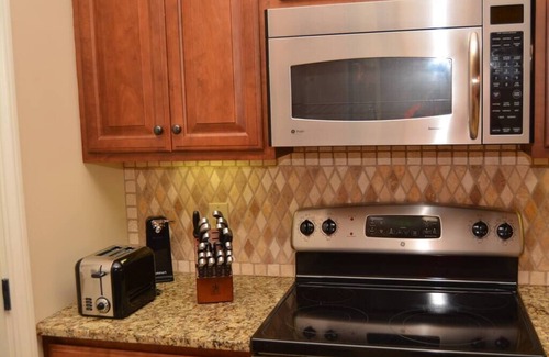This 2 Bedroom, 2.5 Bath condo located in downtown Auburn, across from Auburn University's campus is just two short blocks from Toomer's Corner. We pride ourselves in offering exceptional in unit amenities and "no chores" for our guests.This condo hastwo master suites. The "Tiger Suite"has a queen bed and connected bath with double vanities and a separate jetted tub and shower. This suite also has a desk and office chair to get some work in while traveling. The "Aubie Suite"has a full bed along with a twin extra-long bed. The connected bathroom has a tub/shower combination. There is also a rollaway twin bed. The unit comfortably sleeps six people.