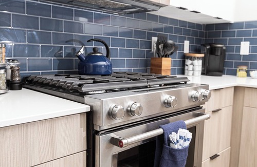 Unwind with a movie, cook in the fully stocked kitchen, and enjoy a drink on the rooftop balcony with a fireplace and foothill views.