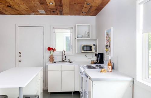 In additional to the wonderful space you have with a queen bed, bathroom and kitchen, the location and proximity to all things Austin are at your fingertips at this spot. The kitchen offers a mini-fridge, small 4-burner electric stove with oven, microwave, coffee maker, and complimentary coffee & tea.